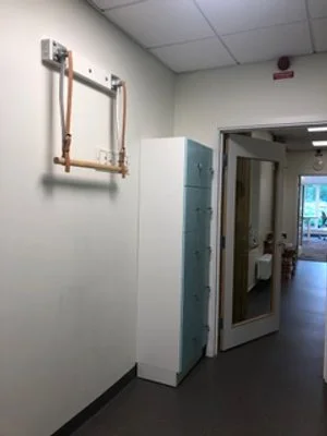 Fackmannamässig montering på vägg eller pelare inomhus. Remmarna är förstärkta med armering i form av fastsydd canvas på lädrets baksida. Kontorstrapetsen uppfyller kraven på hållfasthet enligt standard ISO 20957-1, användarklasser 4.3.1, Klass S & 4.3.2 Klass H. Fackmannamässig montering på vägg eller pelare inomhus.