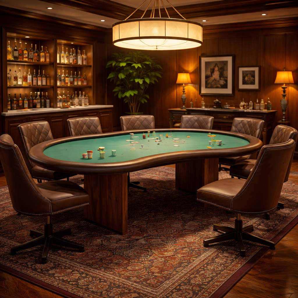 Poker table playing surface is covered with special poker cloth, surroundings can be covered with natural leather or leatherette. These model meet all technical requirements for poker tables and give you possibility to create your own design.