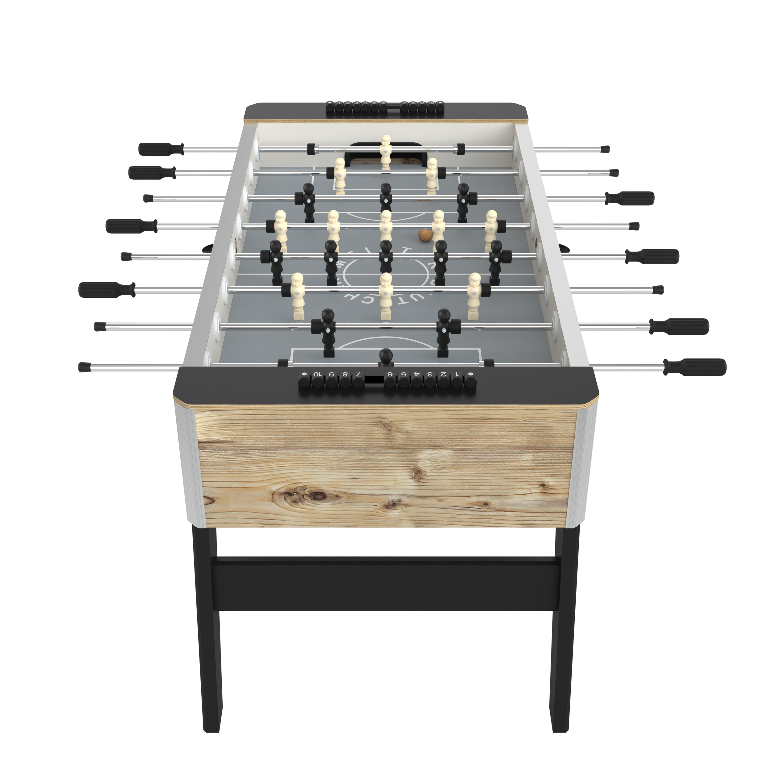 Skapa ett fotbollsbord för din miljö. Välj skalnyans i önskade färger. Välj olika ben och nyanser på fotbollsspelarna, bänkskivorna och välj mellan grön eller grå spelplan.