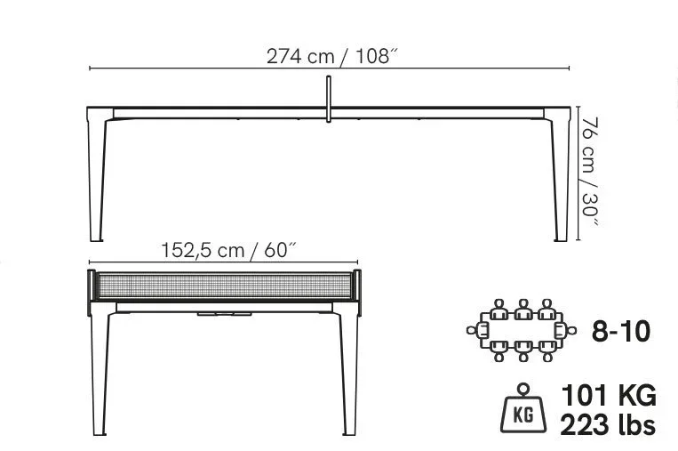 MÅTT 274 x 152,5 x 76 cm